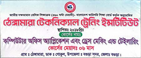 ০৬ মাস (৩৬০ ঘন্টা) মেয়াদী শর্ট কোর্সের ট্রেড সমূহে ভর্তি চলছে
